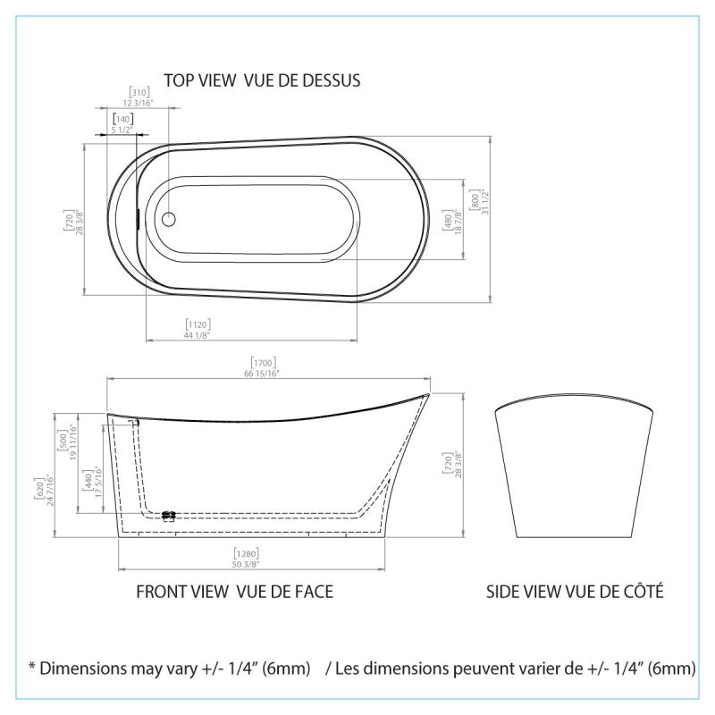 - Pure acrylic construction reinforced with fiberglass