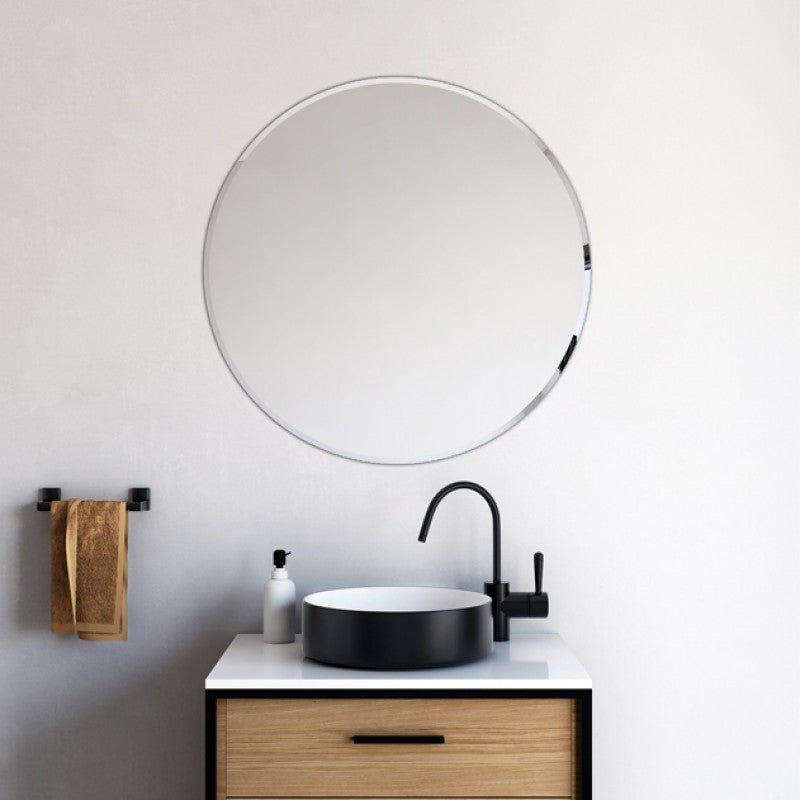 The Cardiff round beveled mirror is elegant, simplistic and looks great in any space. A clean modern design that fits with any decor. This mirror will freshen up the look of your bathroom or any room in the house and offers durability and style all in one.