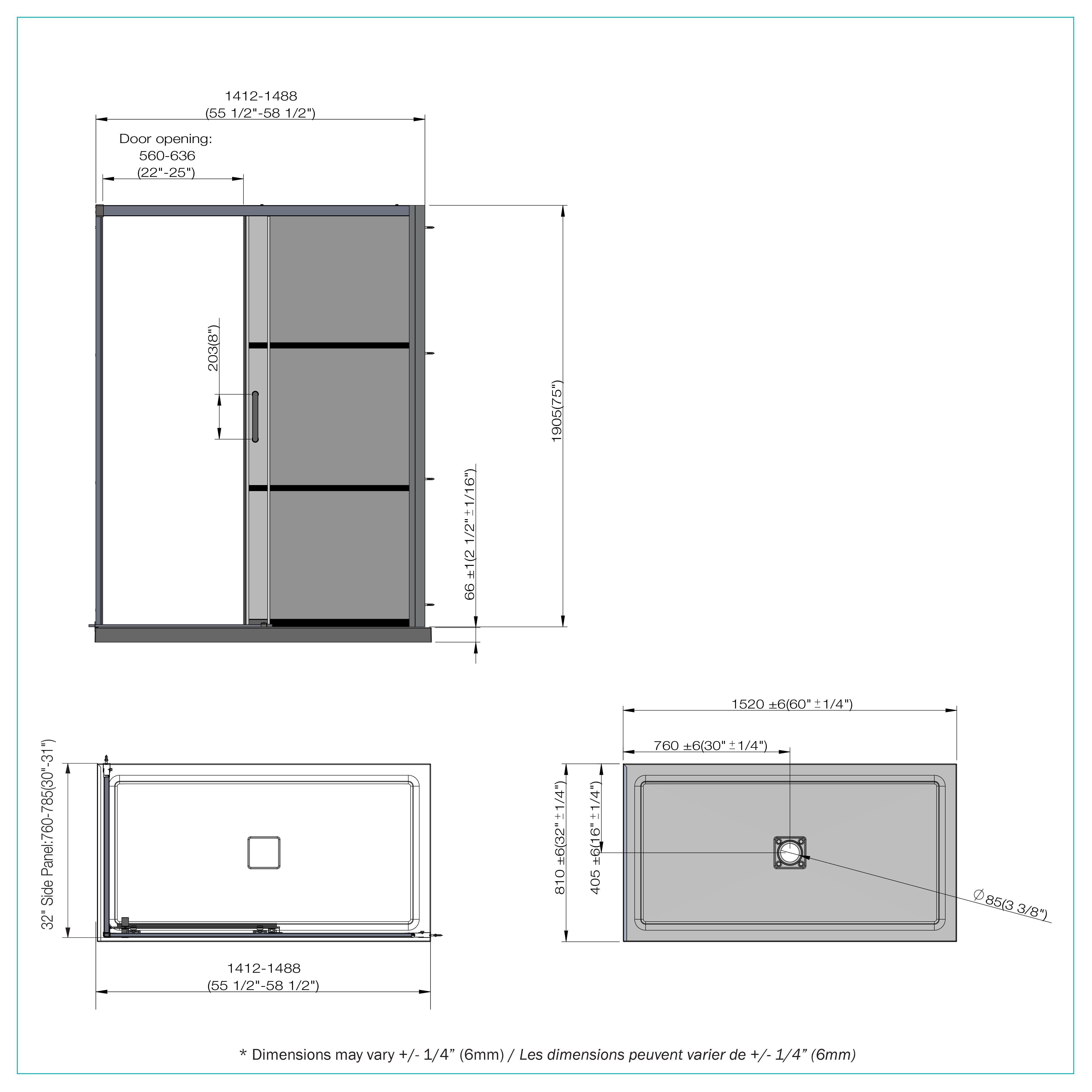 •    2.6 in. low-threshold acrylic base with decorative drain cover