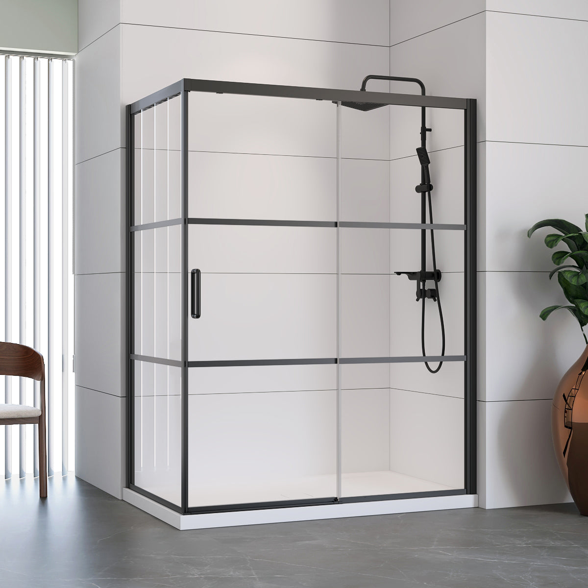 •    Shower Door with return panel and base