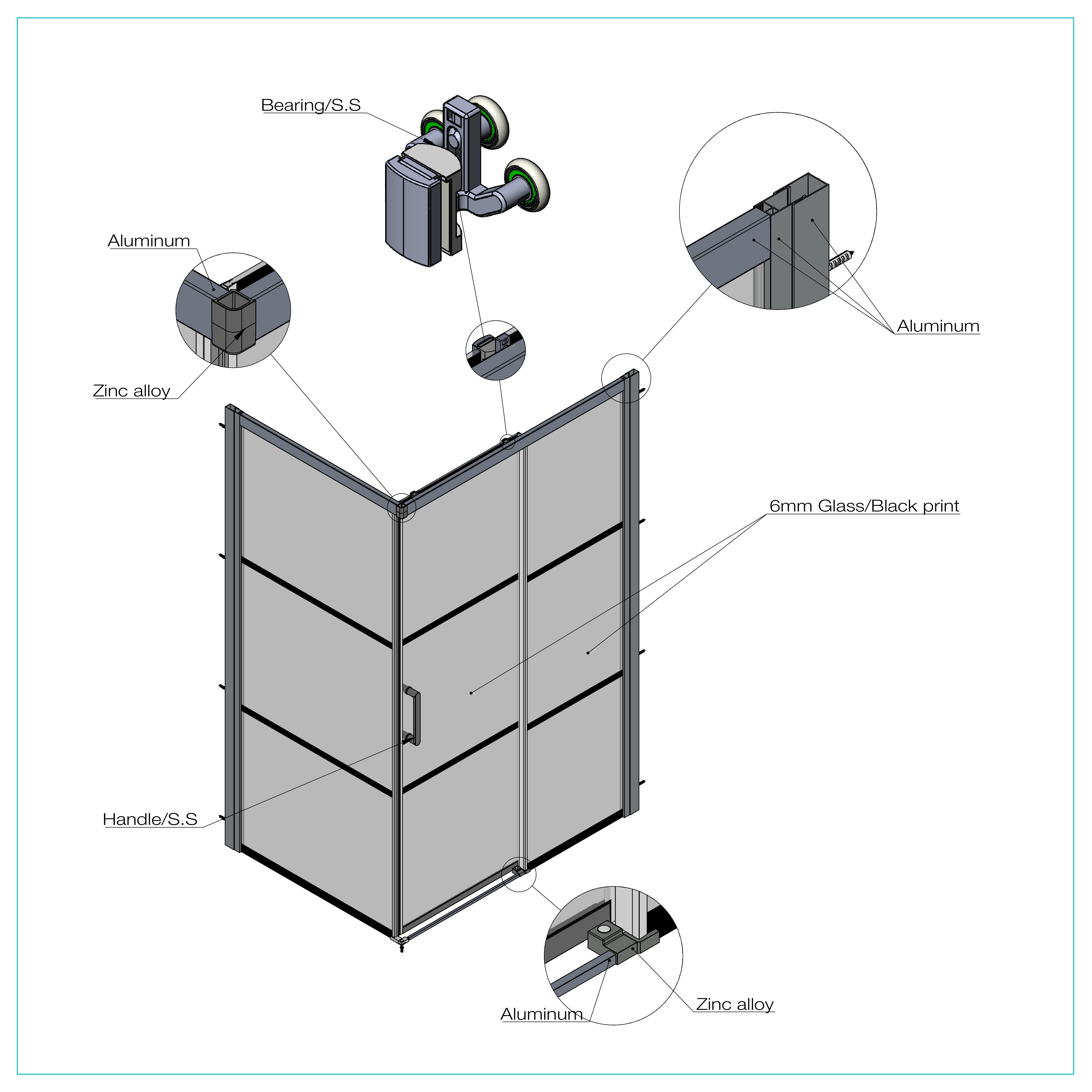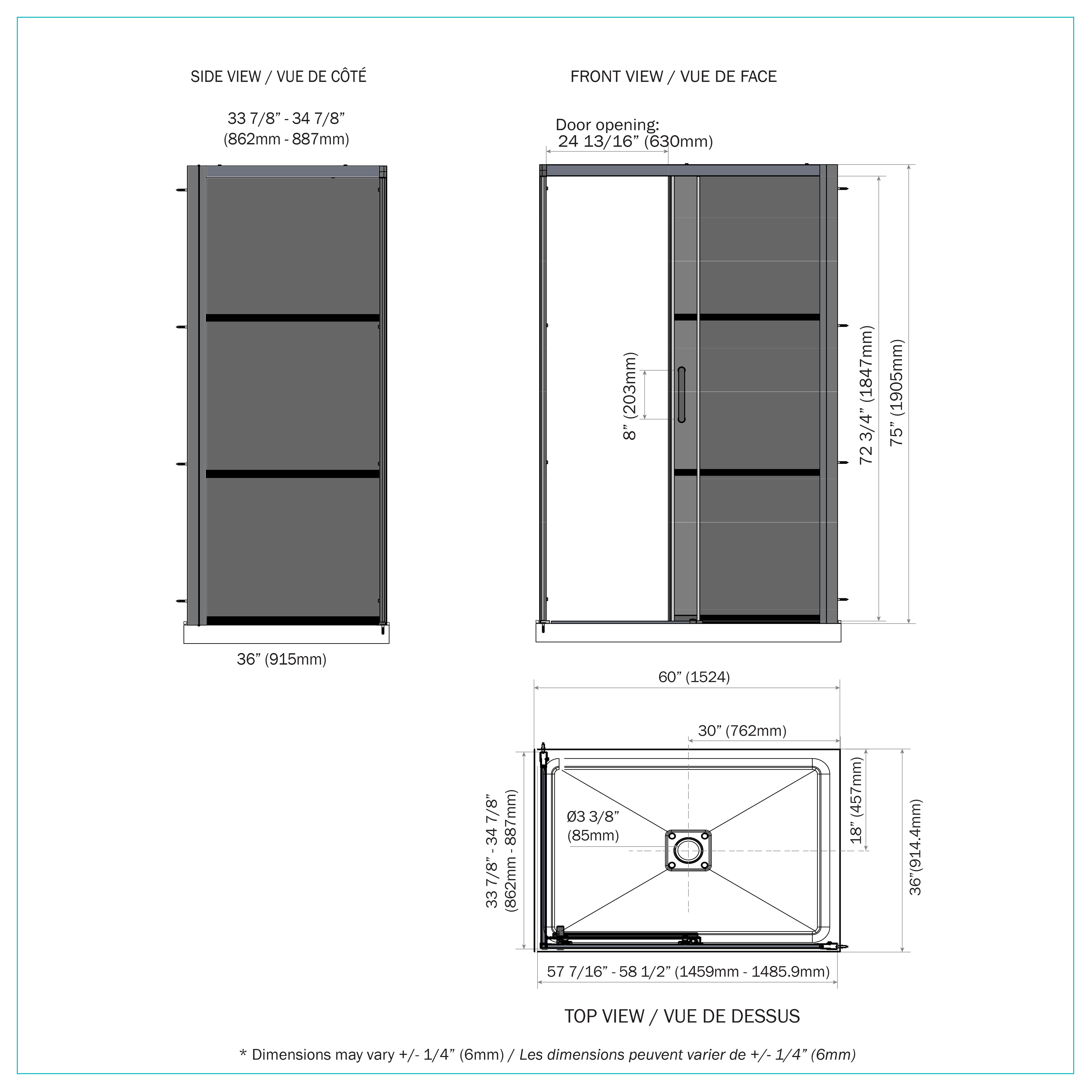 •    6 mm (1/4 in.) clear tempered glass door