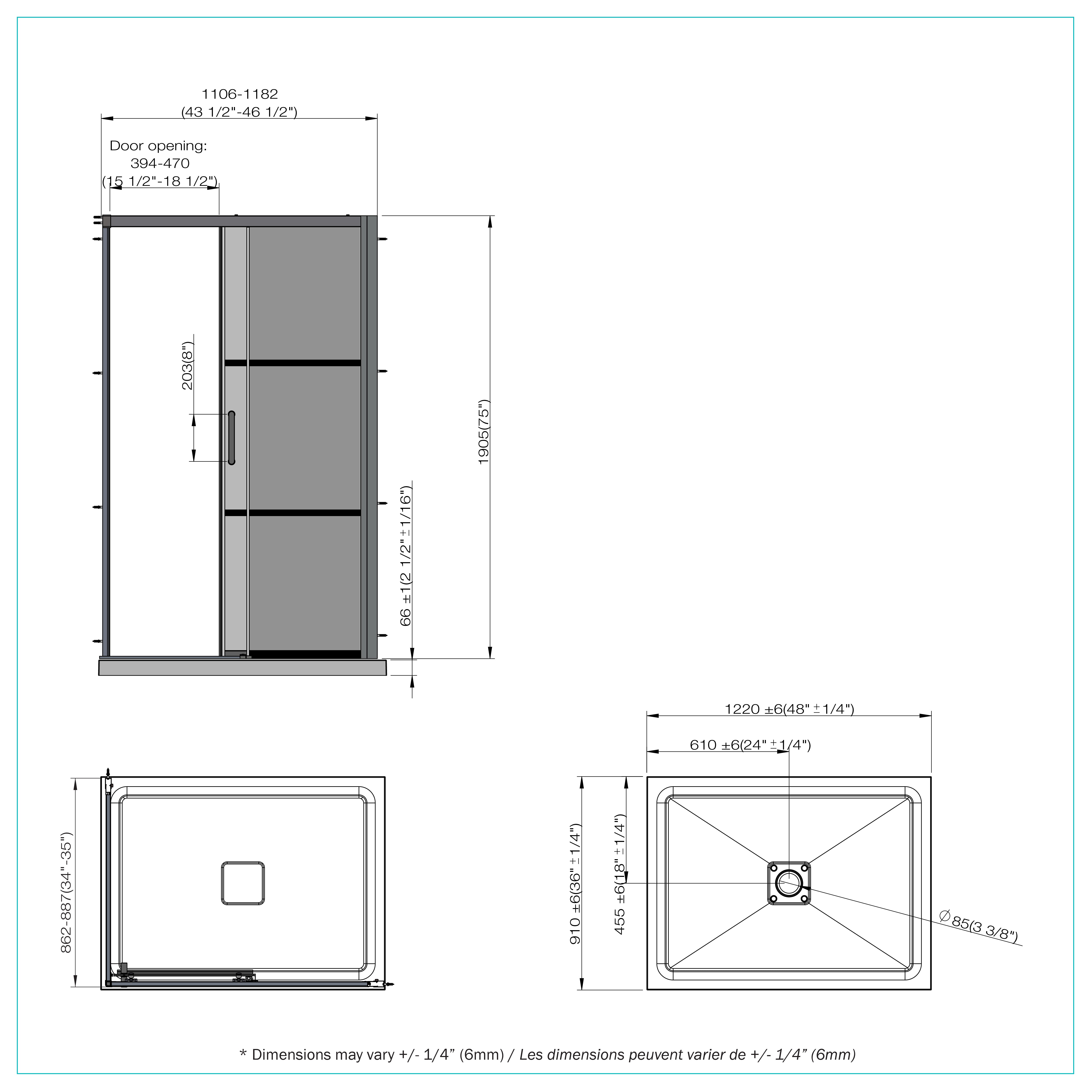 Shower Door with return panel and base