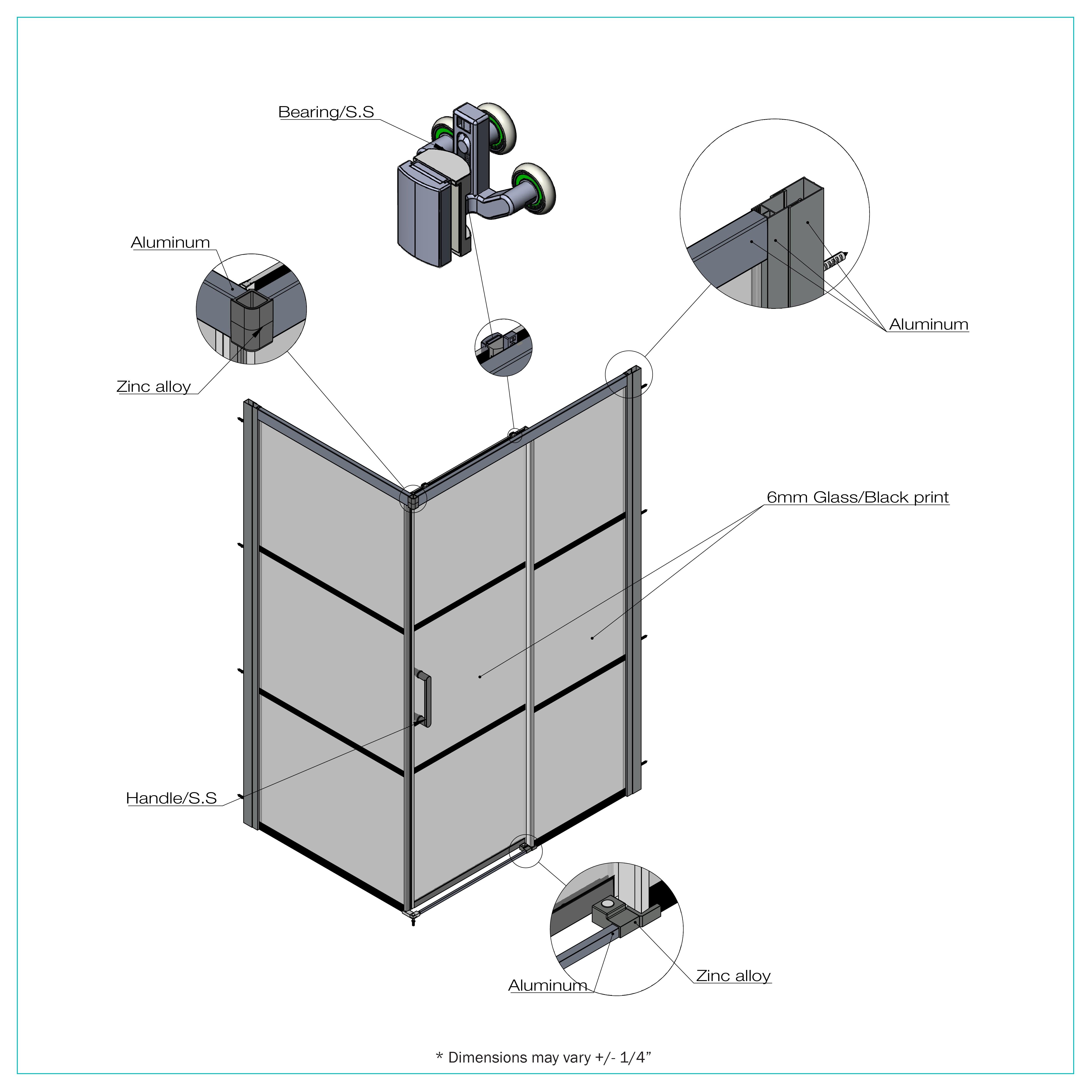 6 mm (1/4 in.) clear tempered glass door