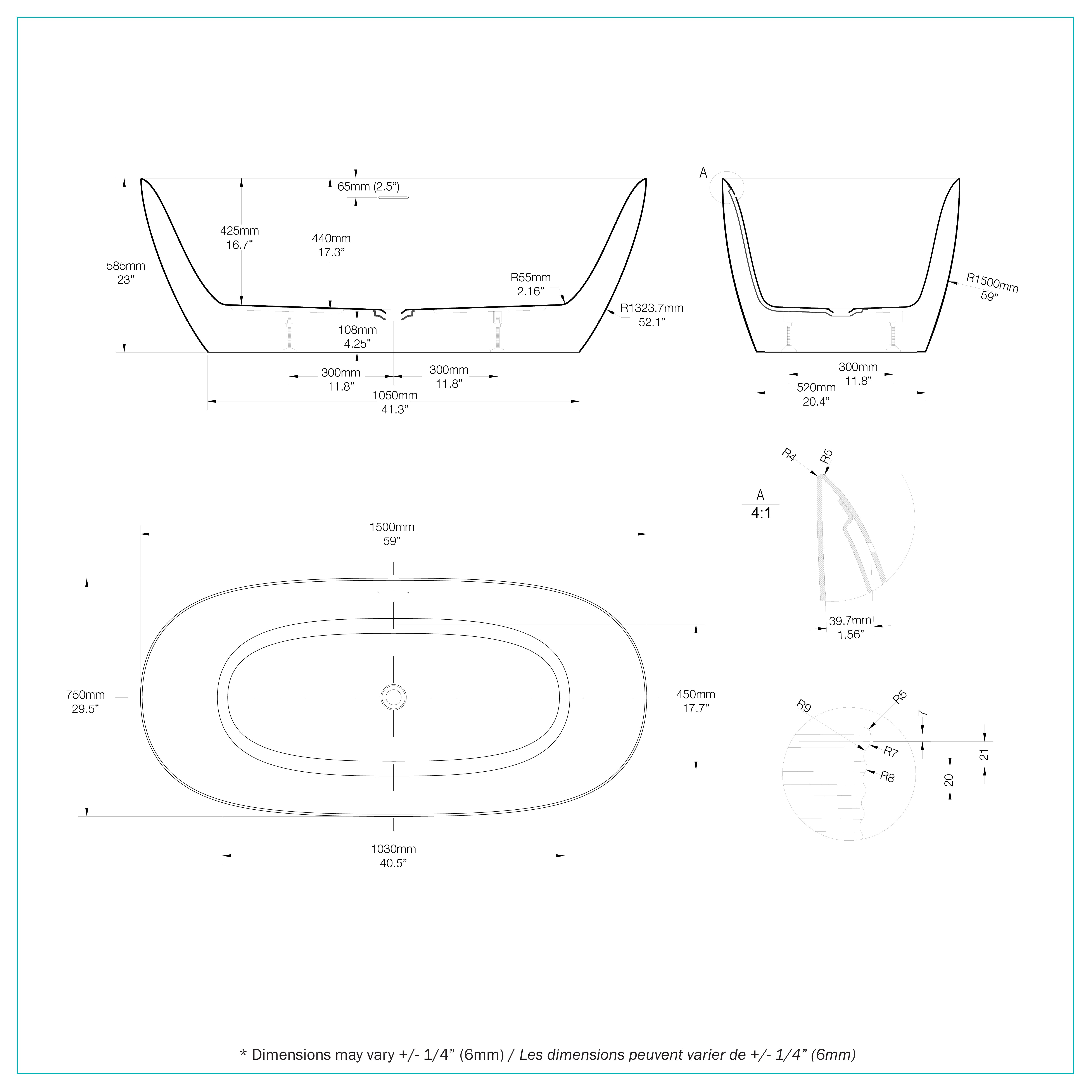 - Dimensions (59 po × 29,5 po × 23 po)