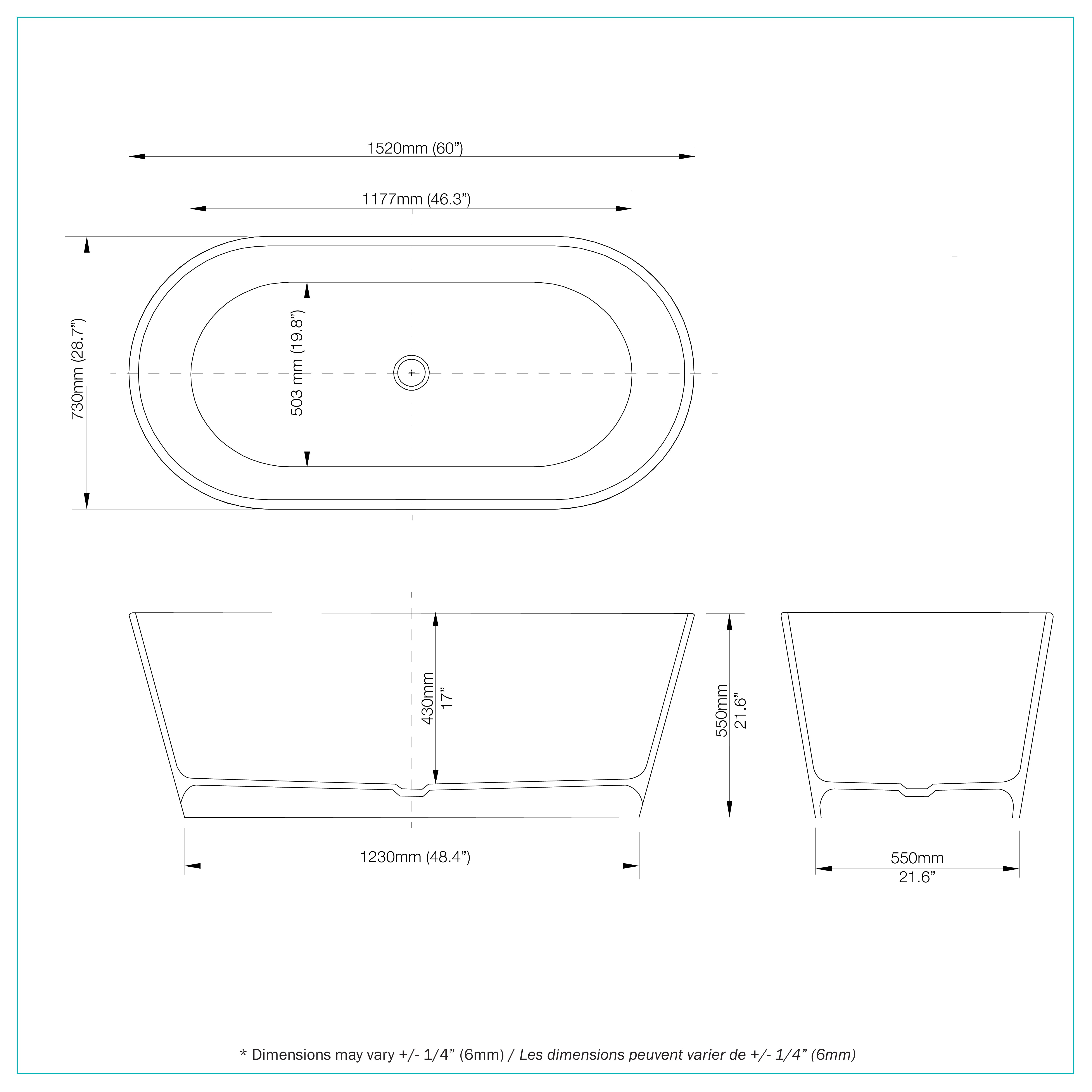 - Dimensions (60 po × 28,7 po × 21,6 po)