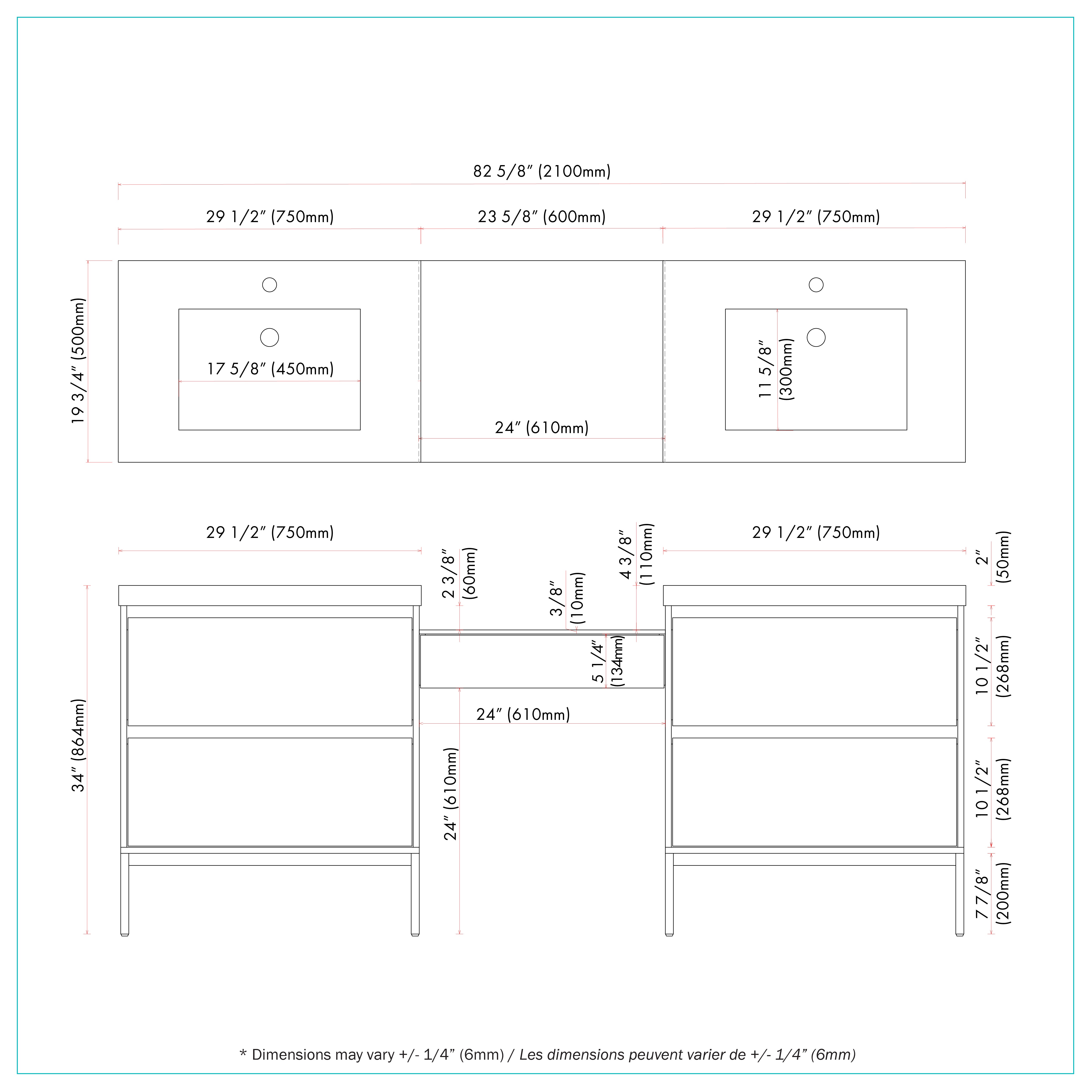 - Dimensions (82 5/8 po × 19 3/4 po × 34 po)