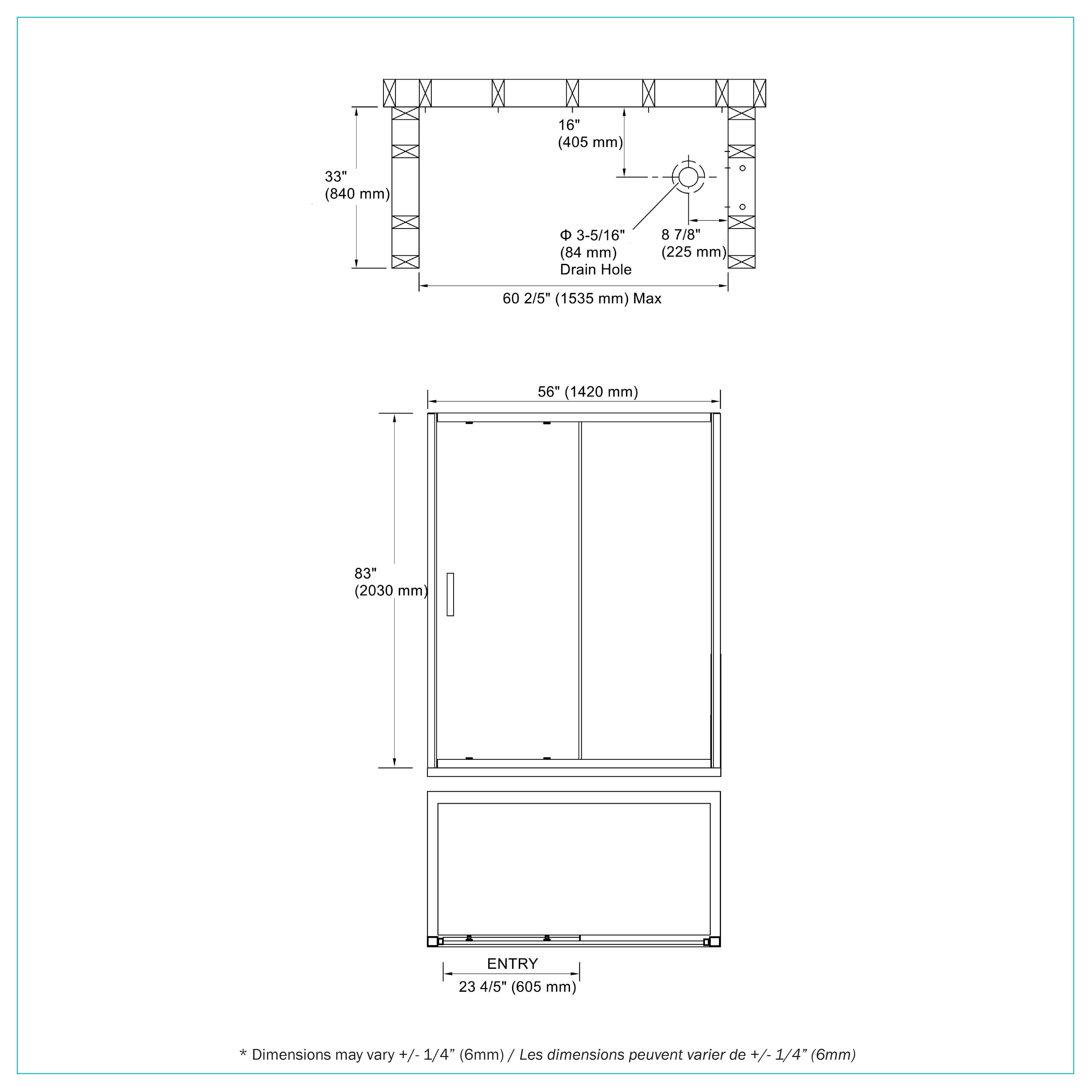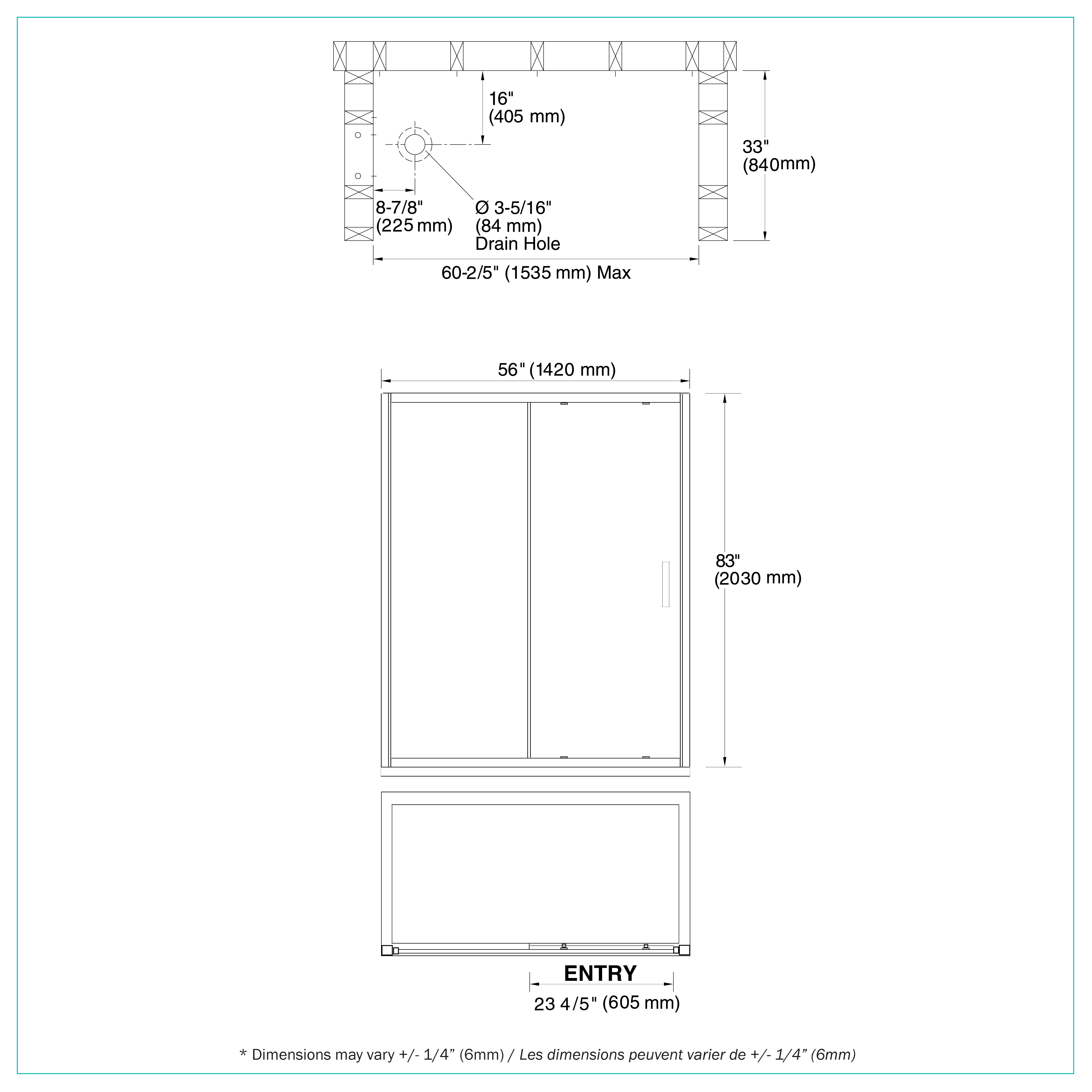 Dimensions (L × W × H/D): 60 in. × 32 in. × 83 in.